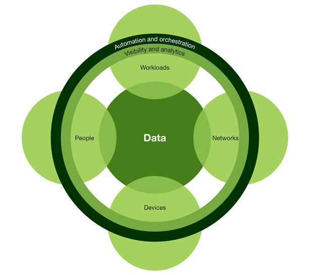 A zero-trust world it is all about verifying access through applied trust. Using the Zero Trust Security Framework, data is the central pivot upon which people, devices, networks and workloads turn. Access to data by any of these must be verified at any point and any time.